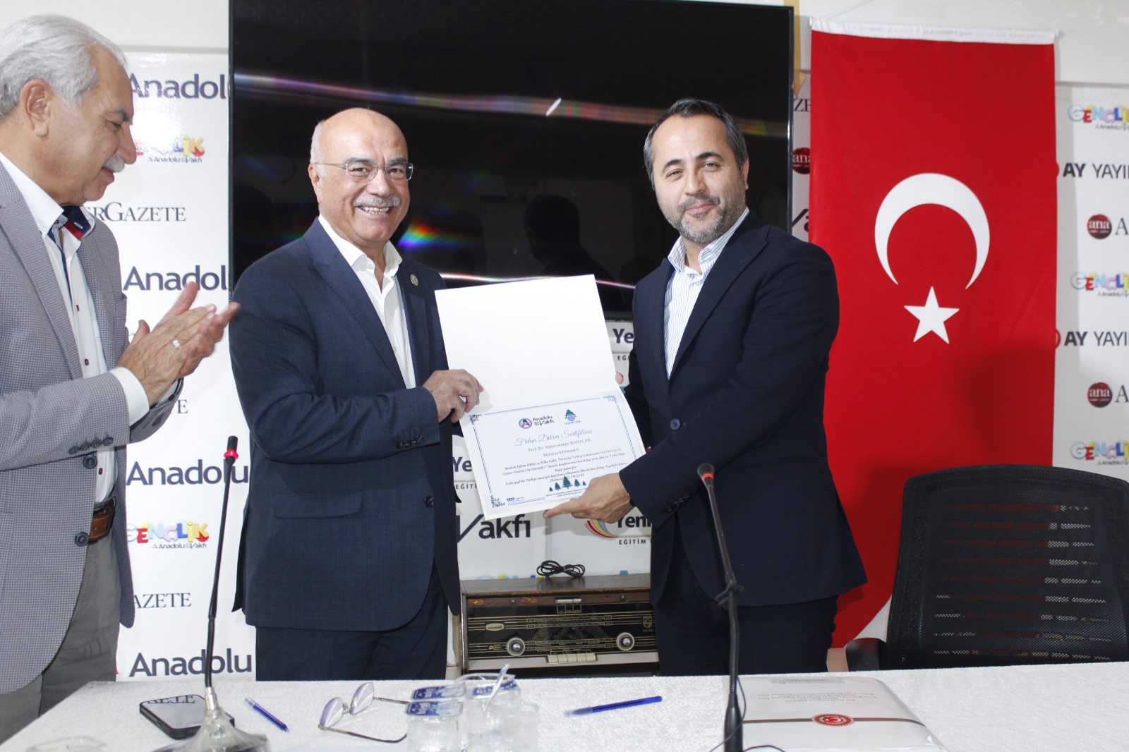 Toplantı sonunda Vakfımız Yönetim Kurulu Başkanı Abidin MEMİLİ, Prof. Dr. Abdurrahman BABACAN’a teşekkür ederek Fidan Bağışı Sertifikası ve Ayizi Dergisi sunarak program tamamladı.