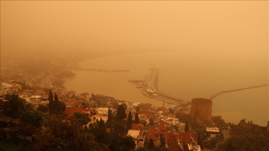 Güneyden esen kuvvetli rüzgar Afrika'dan gelen çöl tozunu beraberinde taşıdı. Alanya ilçe merkezi ve mahallelerde çöl tozu nedeniyle gökyüzü turuncu renge kaplandı.